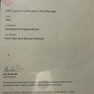 Born and raised in Thailand, I bring the rich traditions of Thai healing into every massage I offer. Since becoming a UK citizen, I’ve made it my mission to create a space where relaxation, care, and personal attention come together in harmony.